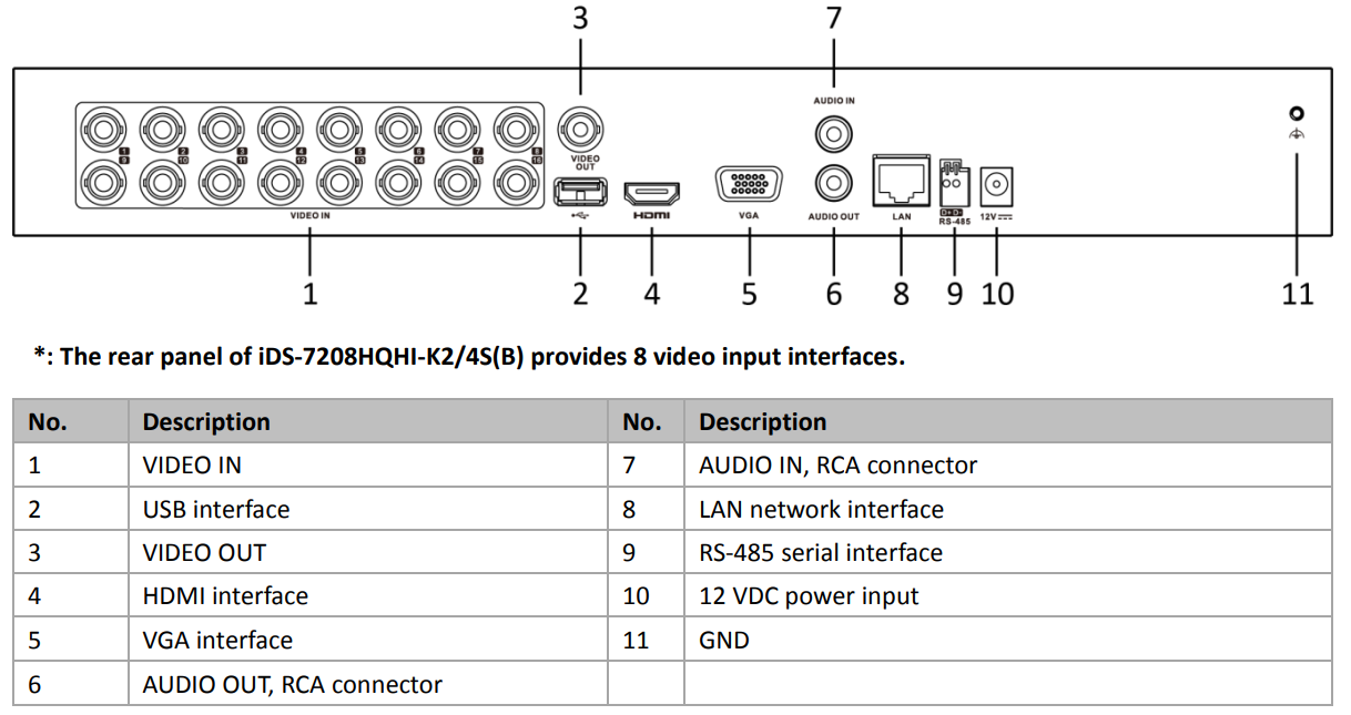HDTVI input: 4 MP, 3 MP, 1080p30, 1080p25, 720p60, 720p50, 720p30, 720p25 Note: The 3 MP signal input is only available for channel 1 of iDS-7204HQHI-K1/2S, for channel 1/2 of iDS-7208HQHI-K1/4S, and for channel 1/2/3/4 of iDS-7216HQHI-K1 AHD input: 4 MP, 1080p25, 1080p30, 720p25, 720p30 HDCVI input: 1080p25, 1080p30, 720p25, 720p30 CVBS input: PAL/NTSC |