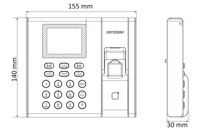 | Fingerprint recognition duaration | 1:N recognition duaration (Up to 1000 fingerprints) < 1 s |