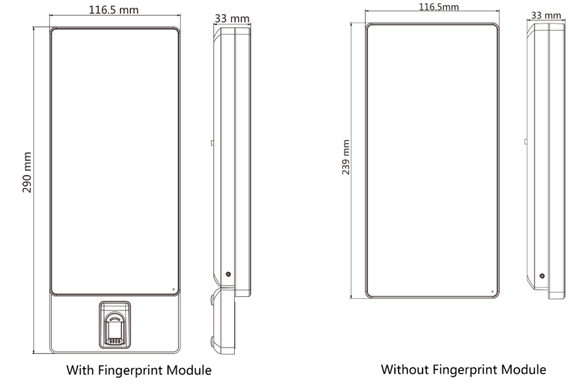 | Face recognition distance | 0.3 to 3 m (Without face mask) |