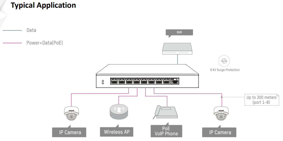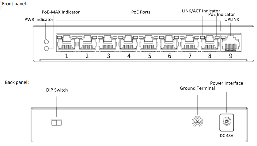 | PoE Port | 8, 10/100Mbps RJ45 ports |