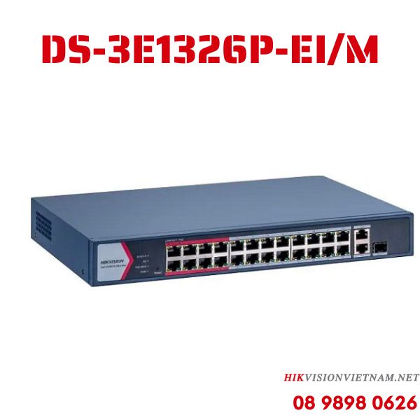 DS-3E1326P-EI/M là Switch mạng thông minh 24 cổng PoE chính hãng, vỏ kim loại, thiết kế không quạt giá rẻ