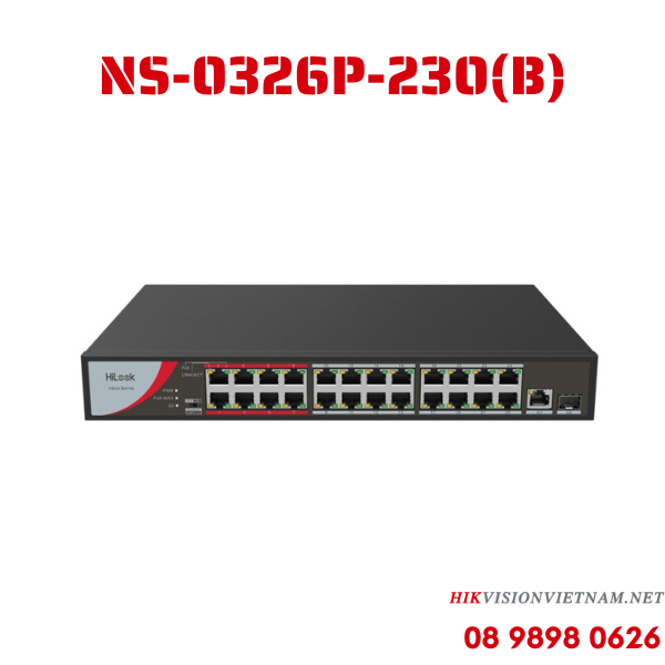 Hilook NS-0326P-230(B) là Switch POE 24 cổng cho hiệu suất vượt trội, bảo mật cao. Switch POE Hilook thiết kế cho độ bền, dễ dàng quản lý. Cho đường truyền mạng ổn định, tốc độ cao, khoảng cách truyền lên tới 250m.
