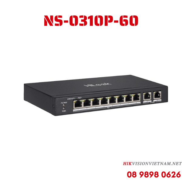 HiLook NS-0310P-60 là Switch có 8 cổng POE có hiệu suất vượt trội, bảo mật cao. Switch POE Hilook thiết kế cho độ bền, dễ dàng quản lý. Cho đường truyền mạng ổn định, tốc độ cao, khoảng cách truyền lên tới 250m.