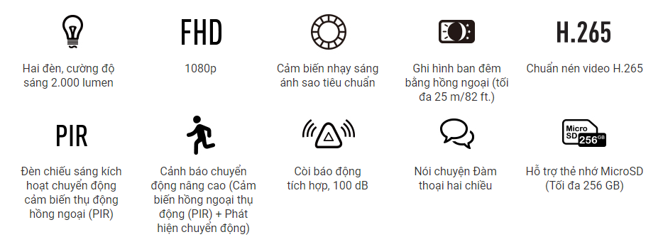 | Bộ nhớ Lưu trữ đám mây | Bộ nhớ Lưu trữ đám mây EZVIZ (hiện đã chỉ có ở một số quốc gia) |
