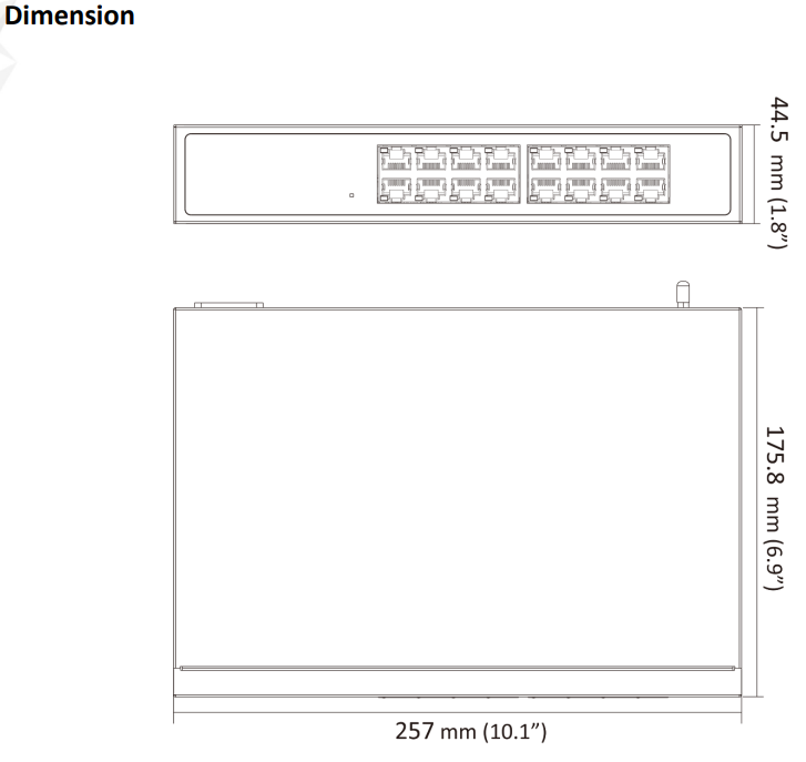 | Ports | 16*10/100/1000Mbps auto-negotiation RJ45 ports |