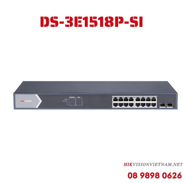 Switch mạng thông minh 16 cổng PoE Gigabit Hikvision DS-3E1518P-EI/M