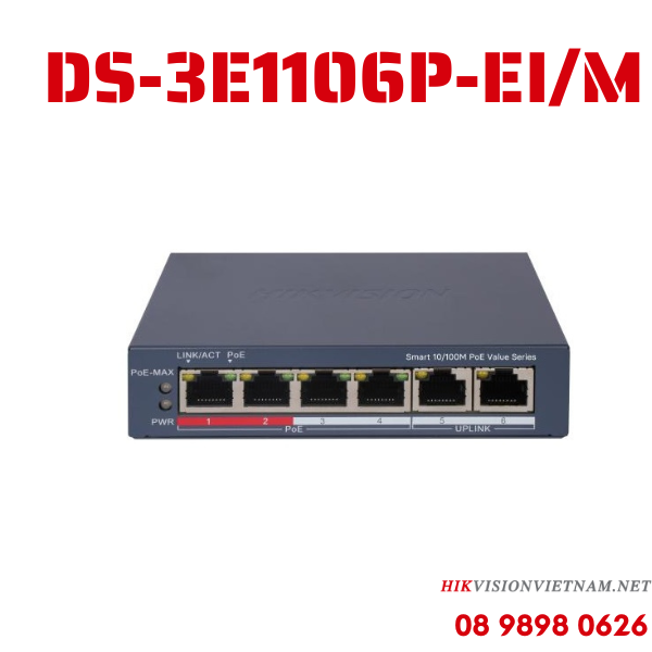 Switch PoE 8 ports quản lý qua cloud Hikvision DS-3E1310P-EI/M