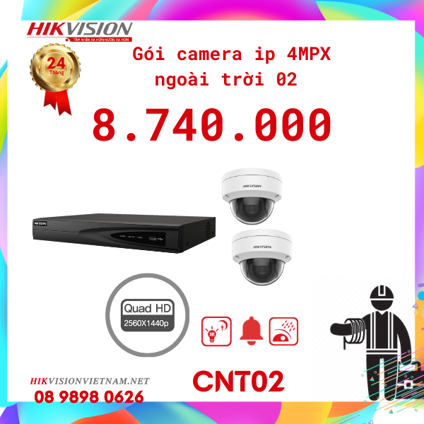 Lắp đặt ngay trọn bộ 02 camera ip Hikvision ngoài trời, phân giải 2K siêu nét, thế hệ IP mới nhất trong dòng camera quan sát, tên miền miễn phí trọn đời.