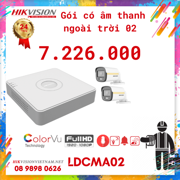 Lắp đặt ngay trọn bộ 02 camera có màu 24/7 và có tiếng ngoài trời full HD 1080 Hikvision, thế hệ TVI mới nhất trong dòng camera quan sát, tên miền miễn phí trọn đời.