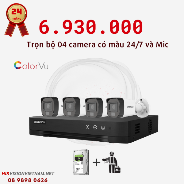 Lắp đặt ngay trọn bộ 04 camera có màu 24/7 full HD 1080 Hikvision, thế hệ TVI mới nhất trong dòng camera quan sát, tên miền miễn phí trọn đời. Hãy liên hệ ngay để được tư vấn nhé.