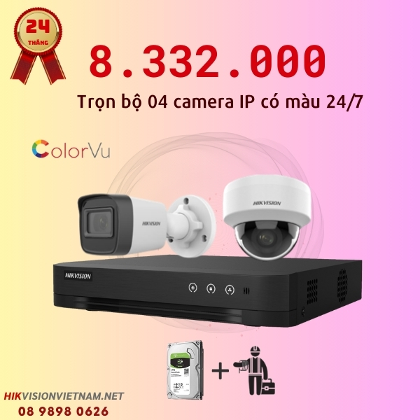 LẮP ĐẶT TRỌN BỘ 08 CAMERA IP 2K CÓ MIC NGOÀI TRỜI GIÁ RẺ CỦA HIKVISION