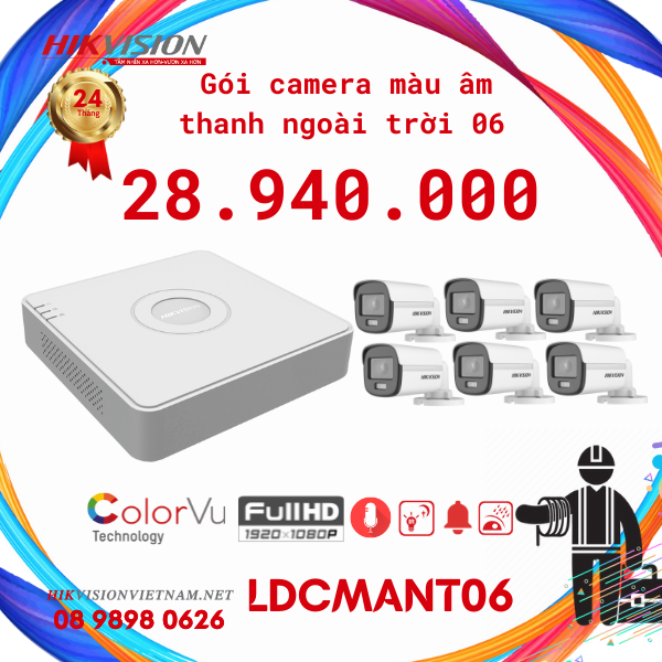 Lắp đặt ngay trọn bộ camera 06 có màu 24/7 và có tiếng ngoài trời full HD 1080 Hikvision, thế hệ mới nhất trong dòng camera quan sát, tên miền miễn phí trọn đời.