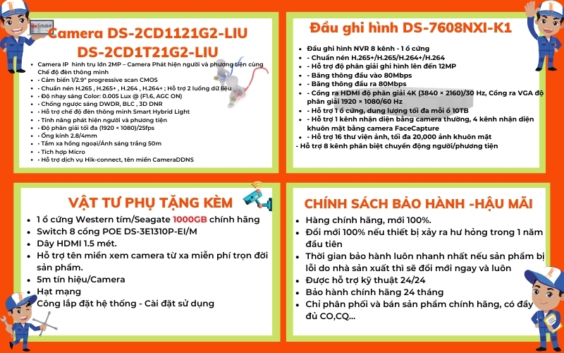 LẮP ĐẶT TRỌN BỘ 07 CAMERA IP 2MP CÓ MIC GIÁ RẺ CỦA HIKVISION