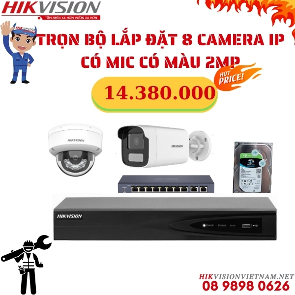 LẮP ĐẶT TRỌN BỘ 8 CAMERA IP 4MP CÓ MIC CÓ MÀU 24/7 HIKVISION
