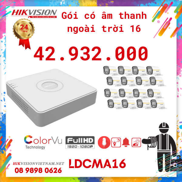 Lắp đặt ngay trọn bộ camera 16 có màu 24/7 và có tiếng ngoài trời full HD 1080 Hikvision, thế hệ TVI mới nhất trong dòng camera quan sát, tên miền miễn phí trọn đời.