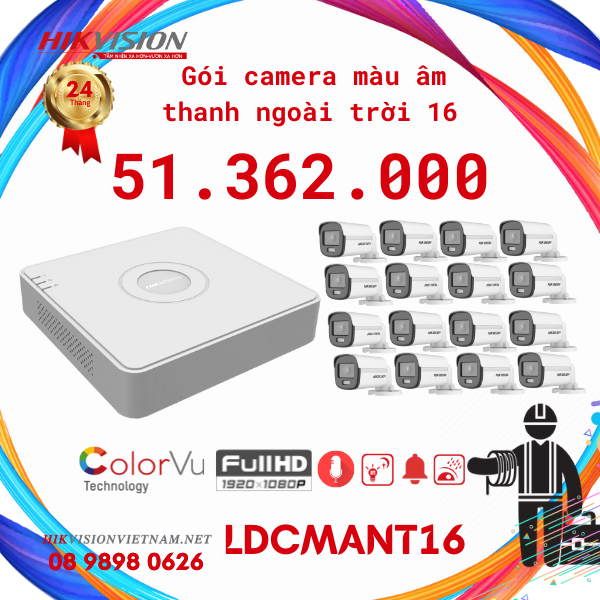 Lắp đặt ngay trọn bộ 16 camera có màu 24/7 và có tiếng ngoài trời full HD 1080 Hikvision, thế hệ ip mới nhất trong dòng camera quan sát, tên miền miễn phí trọn đời.