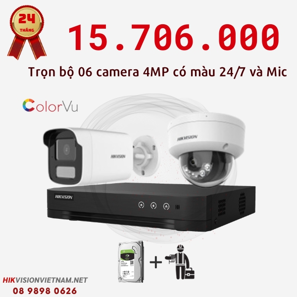 Lắp đặt ngay trọn bộ 06 camera ngoài trời Hikvision phân giải 2K siêu nét, có mic, CÓ MÀU 24/24 thế hệ IP mới nhất trong dòng camera quan sát, tên miền miễn phí trọn đời.